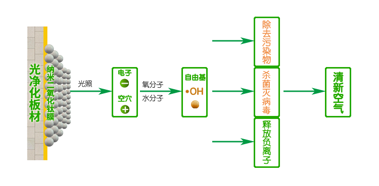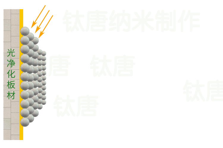 鈦唐光凈化板材納米催化劑(鈦唐光觸媒)是一種納米級二氧化鈦光活性材料,噴涂于板材表面,自然干燥形成看不見(jiàn)的納米膜。在室內光作用下,有效降解有毒害氣體(如甲醛、苯、VOCs等);殺滅多種細菌和病毒(抗菌率和病毒滅活率均高達99%),抑制疾病傳播;同時(shí)不斷釋放“長(cháng)壽素”負氧離子,有益于人體健康。
