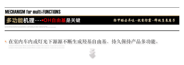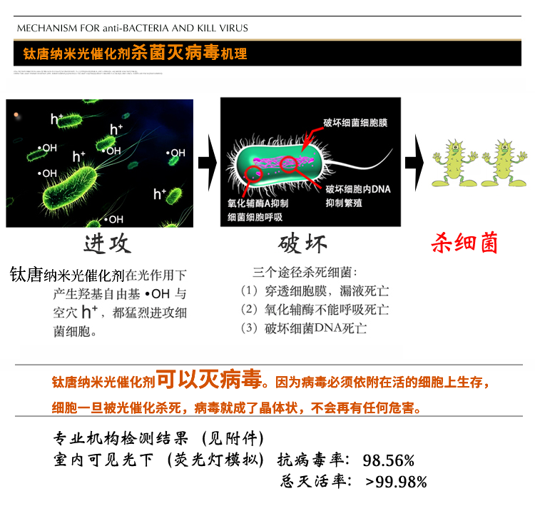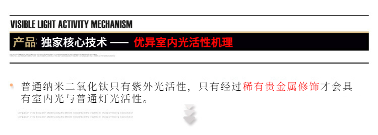 4、 高效性:該納米光催化助劑在室內光線(xiàn)下具有優(yōu)異的產(chǎn)品功能。