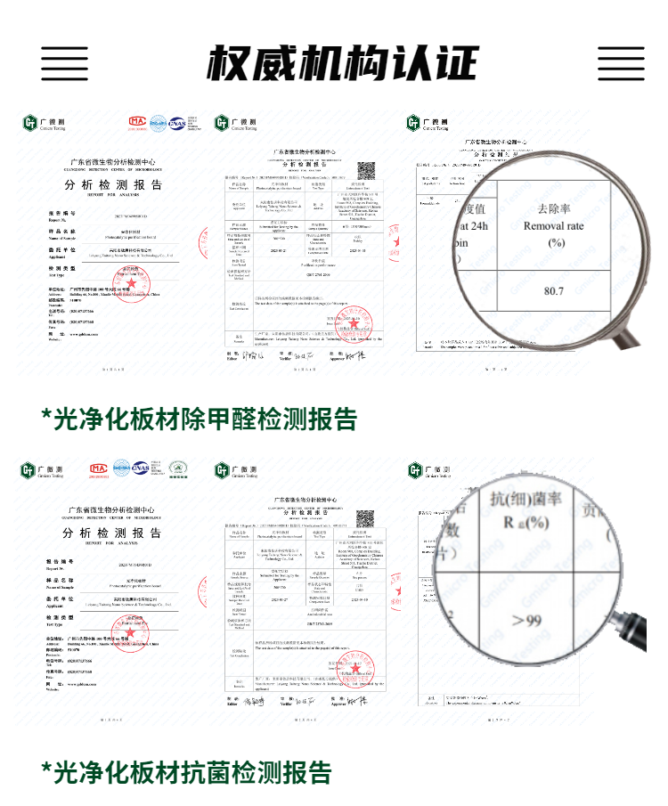 光凈化板材除甲醛去異味、抗菌、釋放負氧離子功能演示視頻