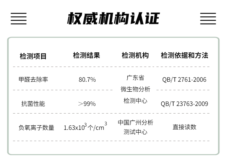 鈦唐光凈化板材納米光催化劑(鈦唐光觸媒)是一種納米級二氧化鈦光活性材料,噴涂于板材表面,自然干燥形成看不見(jiàn)的納米膜。在室內光作用下,有效降解有毒害氣體(如甲醛、苯、VOCs等);殺滅多種細菌和病毒(抗菌率和病毒滅活率均高達99%),抑制疾病傳播;同時(shí)不斷釋放“長(cháng)壽素”負氧離子,有益于人體健康。...