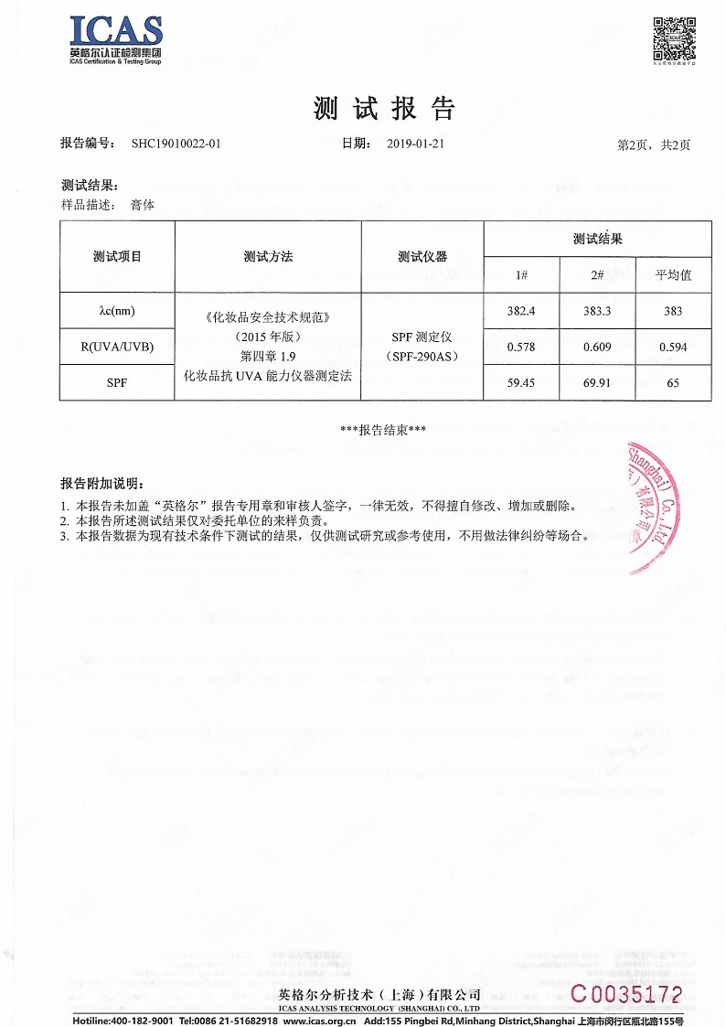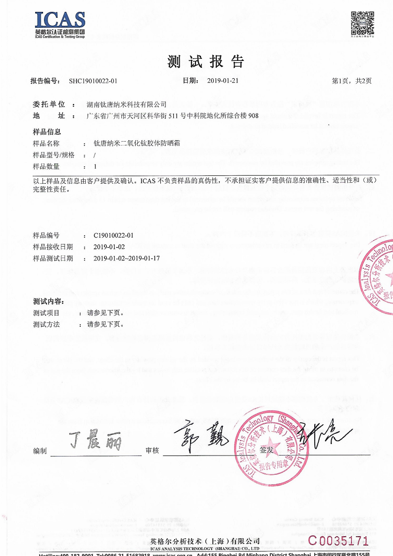 產(chǎn)品無(wú)細菌與重金屬污染,防曬功能優(yōu)異,SPF值最高可達65,可以滿(mǎn)足最優(yōu)異防曬化妝品配制,并可賦于產(chǎn)品抗菌消炎功能。