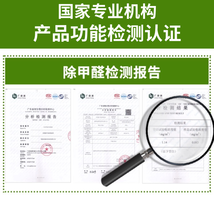 鈦唐納米負氧離子液專(zhuān)業(yè)機構產(chǎn)品功能檢測報告附件:1:負氧離子濃度檢測報告:2:產(chǎn)品除甲醛檢測報告:3:產(chǎn)品抗菌檢測報告:...